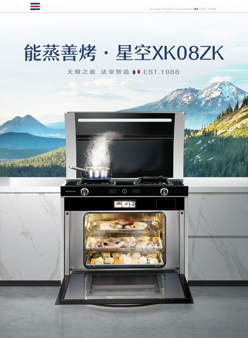 法帝設(shè)計(jì)師們獨(dú)具慧眼,執(zhí)著于探索神秘星空,并以此為靈感,創(chuàng)造出法帝的帝?星空XK08ZK蒸烤消一體集成灶。
