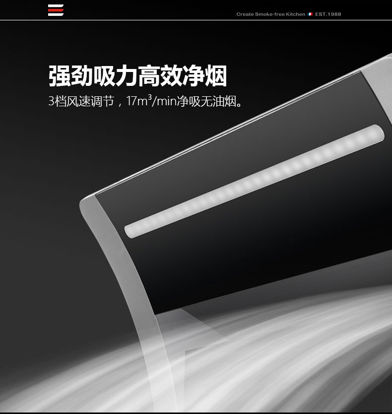 優(yōu)雅的弧形機(jī)頭設(shè)計(jì),如同一輪彎月高掛,不僅自然流暢,更具備不俗的實(shí)力。皎月照亮黑夜,指引人們前行;而弧形機(jī)頭設(shè)計(jì)可以形成超大控?zé)焻^(qū),有效提升吸油煙效率,三擋風(fēng)速調(diào)節(jié),17m3/min凈吸無(wú)油煙,讓你暢享無(wú)煙廚房!內(nèi)部采用微晶凈潔板設(shè)計(jì),將烹飪過程中吸入煙腔內(nèi)的油與煙分離,清潔打理更方便,只需抹布輕輕一擦即凈。而LED 燈照射出來(lái)的柔和燈光就恍若如水的月光,用光學(xué)之美照亮烹飪視野,給用戶人性化的體貼。