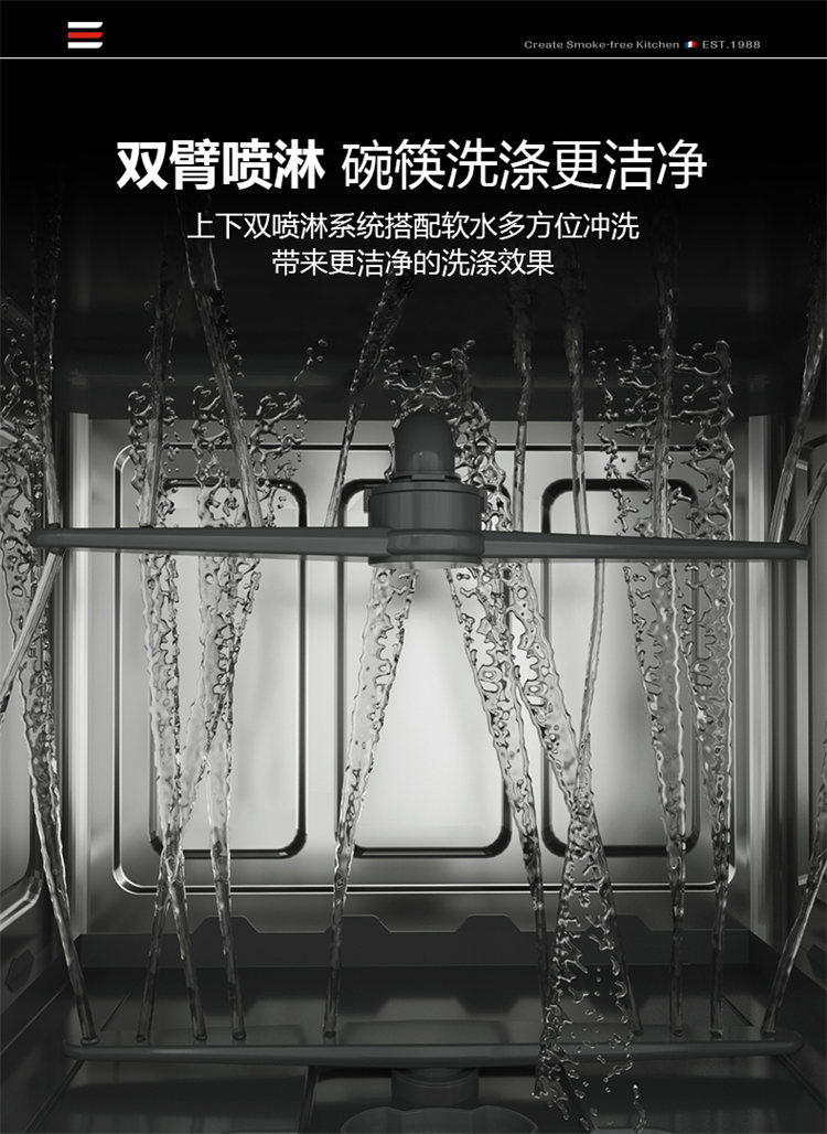 法帝J3集成水槽洗碗機(jī)采用上下雙噴淋系統(tǒng),360°旋噴勁洗,70℃高溫溶解,頑固油污都能清洗干凈,還能高溫殺菌。