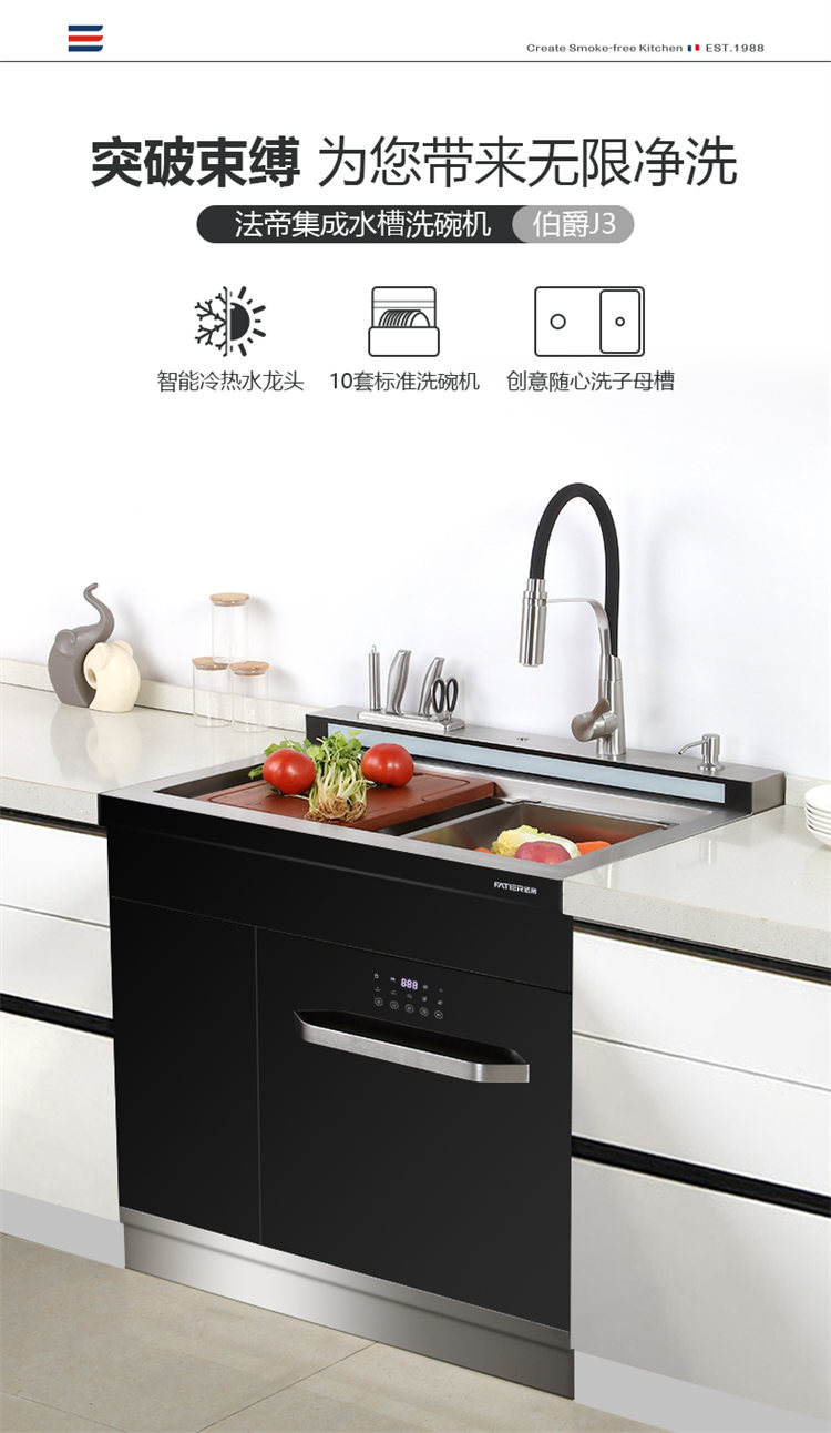 法帝伯爵J3集成水槽不僅可以清洗果蔬,還可以清洗碗筷并進(jìn)行多重殺菌消毒。